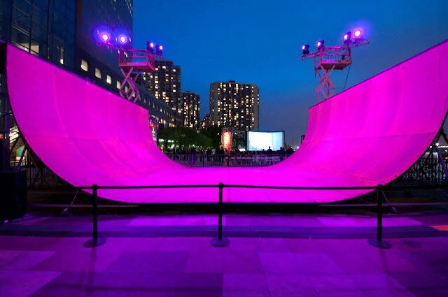 A great documentary on Matt Hoffman closed out this year's Tribeca Film Festival "Drive In": The Birth of Big Air. The movie was great, and the excellent team at Good Sense & Company (for whom I work on these events) came up with a great show-stopping closer: a live performance by Hoffman and others on a half pipe built overnight Friday on the plaza of the World Financial Center.