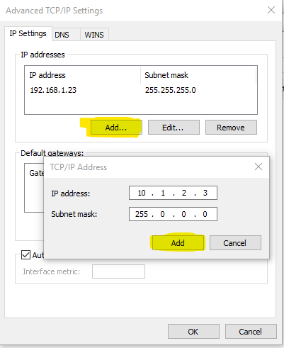 In my classes I constantly say how important it is that each device on a network has a unique IP (Internet Protocol) address. Don’t tell my students, but for more advanced applications it’s often very useful for a machine to have two IP addresses on the same interface, and this is possible to do on both Windows and Apple machines. Why would you want to do this? A good example is configuring something where you have to change an IP address from its default in one subnet to another in a different subnet. Here’s an example of where two IP addresses is very useful when configuring Beckhoff I/O devices.