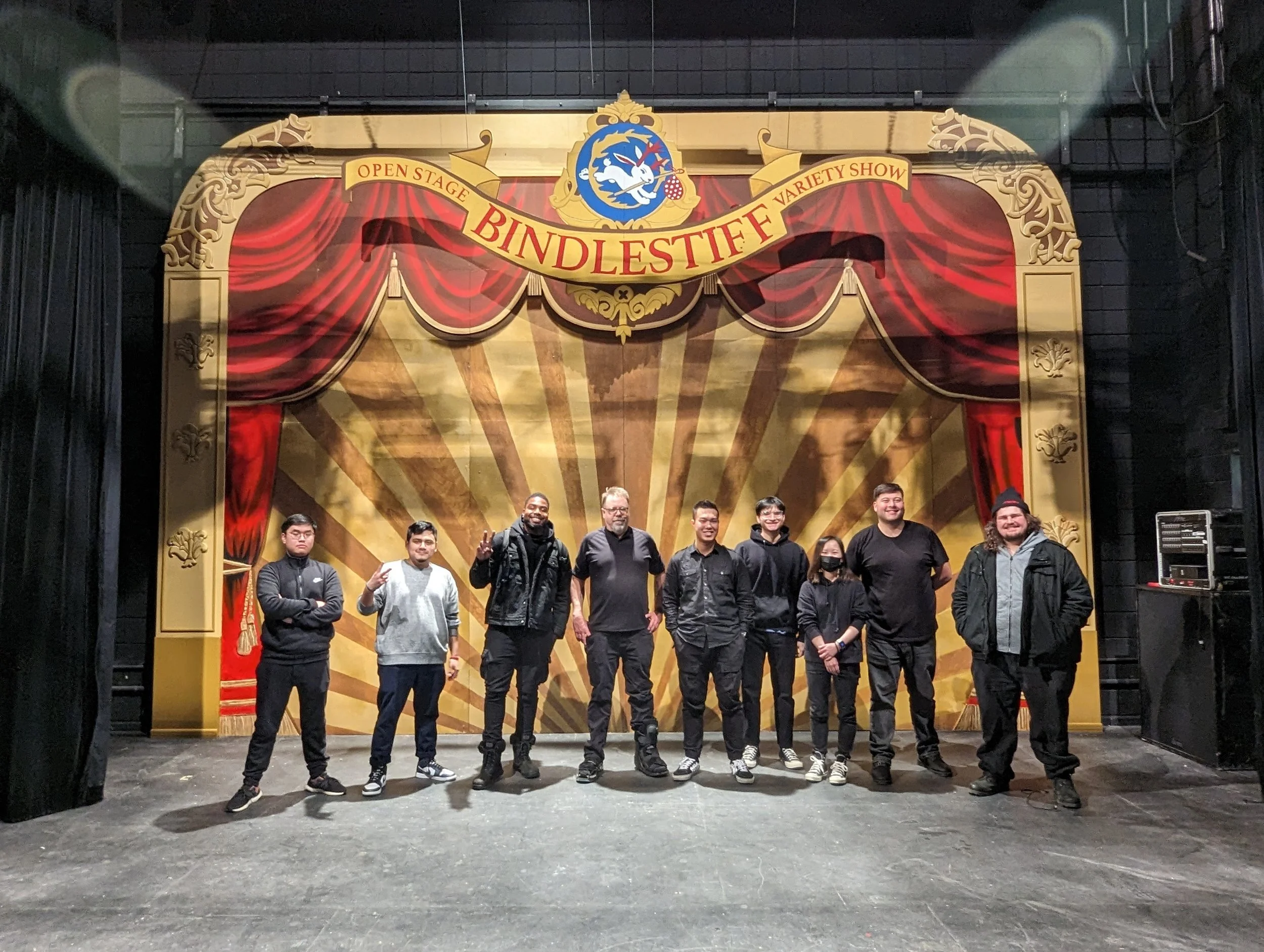 The Bindlestiffs know how to “make show”, as Keith always says, and this great night was a fitting way to wind up 24 years of teaching at the school and over 300 performances of more than 100 productions. The students on my crew this semester (most of whom are in the picture) really killed it with yet another smooth run. Keeping in mind that many of our students do their first-ever live shows with us, it’s always amazing to me the beauty that so often emerges from the chaos, since we put these shows together only with a quick tech and no rehearsal. I’ve been so overwhelmed with the semester that I haven’t thought literally beyond giving my final, final exam tomorrow, but I am planning a gathering sometime after the holidaze.