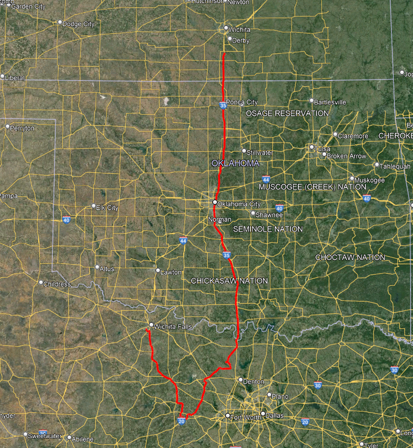 I started in Altus, OK and headed over and had lunch with Nick and Michael in Ardmore. Storms were getting crunchy right outside the restaurant, and then I headed east and north a bit and got on a severe thunderstorm near Gene Autry. A storm to the south got a tornado warning, so I tried to head down there but there was a huge traffic jam in Madill (train hit a car apparently) and so I headed back east ended up hanging out between the two storms and shot a timelapse of the south storm. I then headed back to Ardmore for the night.
